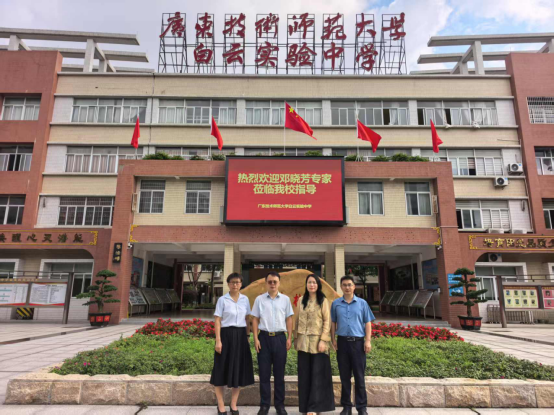学院副院长、白云教育集团总校长冯帮代表广师大白云教育集团对邓晓芳的到来表示热烈欢迎,并简要介绍了集团依托广师大优质资源构建“大学—集团—学校”协同教研机制的基本思路与成效举措。随后,在广东技术师范大学白云实验中学(以下简称“广师大白云实验中学”)校领导的陪同下,邓晓芳实地参观校园,深入了解学校在课程改革、教师发展、学科建设等方面的做法与成效。她对学校整洁有序的育人环境、鲜明的办学特色与浓郁的书香氛围给予了高度评价,认为学校坚持以质量立校、以文化育人,展现出良好的发展态势和积极进取的精神风貌。