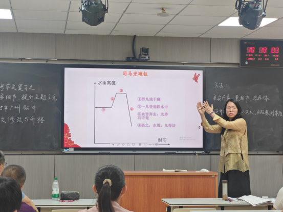 在课堂观摩环节,邓晓芳深入教学一线,全程观摩了广师大白云实验中学青年语文教师杨彩莲执教的作文升格教学课《充实内容细节,提升主题立意——2025年广州一模作文升格课》。课例围绕“诊断—指导—实践”三位一体教学设计路径,落实语文写作教学“问题导向—方法指导—实践应用”的闭环逻辑,获得现场教师一致好评。评课交流中,邓晓芳充分肯定了杨老师课堂设计的系统性与针对性,称其为“集理念更新与实践突破于一体的优秀范式”,具有良好的推广价值与引领效应。。