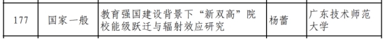 近日,2025年全国教育科学规划课题拟立项名单正式公布,我院杨蕾副教授申报的《教育强国建设背景下“新双高”院校能级跃迁与辐射效应研究》成功获批一般项目,获资助经费20万元。这是我院在国家级科研项目方面取得的又一重要进展,标志着学院高水平科研成果建设实现新突破,为博士点申报提供了有力支撑。