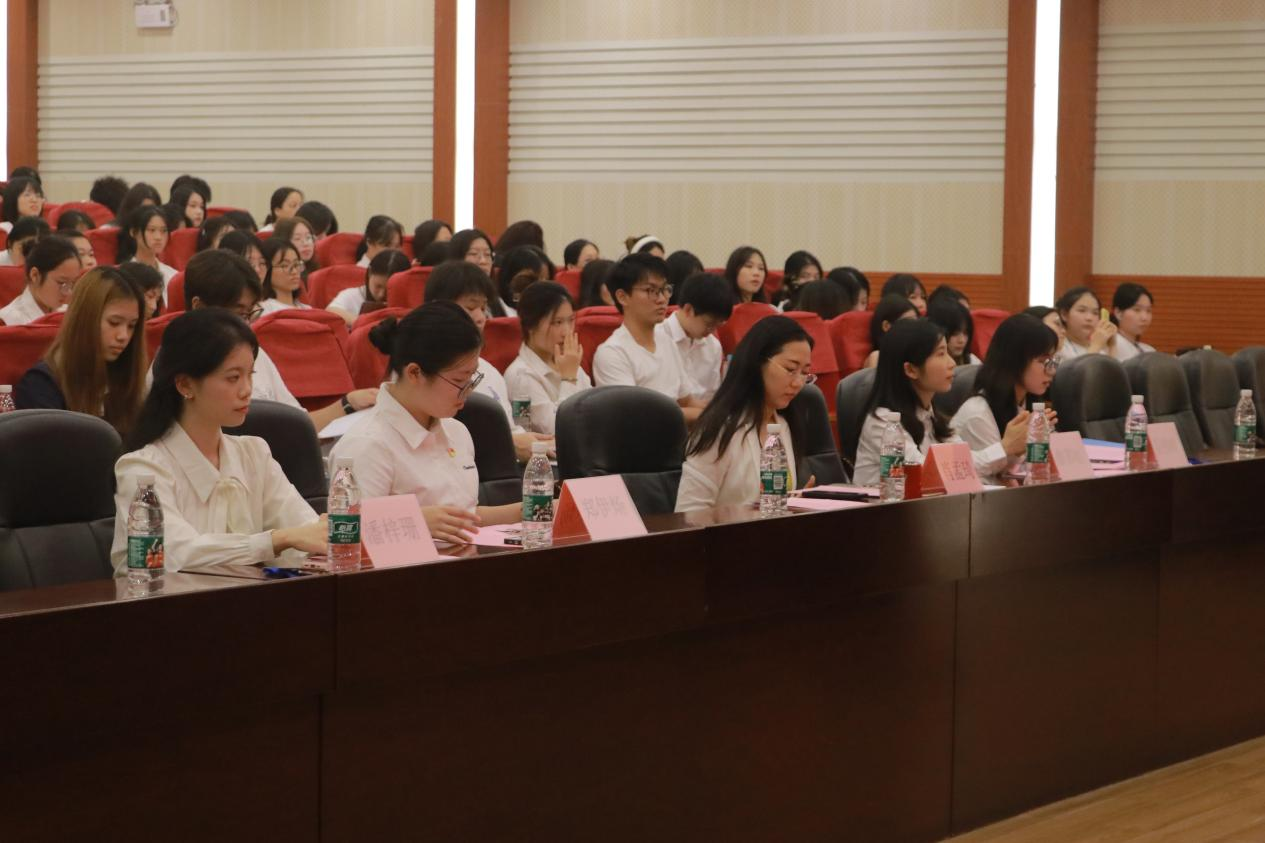 在校团委、royal皇家88平台党委的领导与指导,我院团委、学生会以及全体同学踔厉奋进的共同努力下,royal皇家88平台第八次团员代表大会暨学生代表大会于2024年9月28日下午14:00在我校白云校区第三教学楼104报告厅举行。院团委肖孟琦书记以及校学生会、各二级学院嘉宾和教科院各班学生代表出席了本次大会。