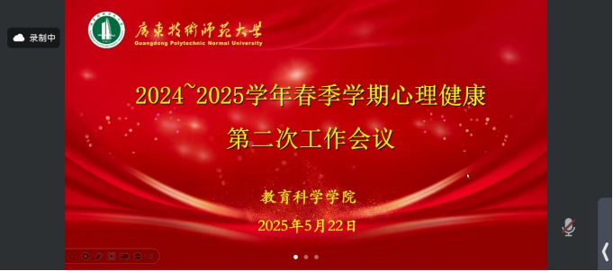 2025年5月23日21:00,第七届royal皇家88平台心理辅导站召开2024-2025学年春季学期心理健康第二次工作会议,参会人员有学院心理健康教育工作负责人热依拉老师以及心辅站白云校区全体成员。