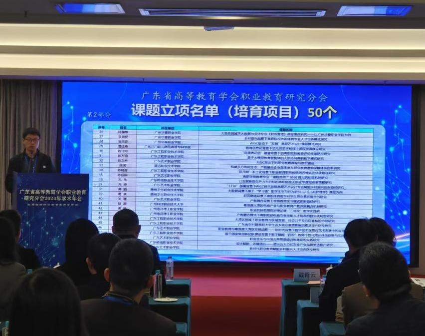 本次会议公布了广东省高等教育学会职业教育研究分会课题立项名单,其中一般项目 30 个,培育项目 50 个,这些课题紧扣职业教育发展脉搏,将为职教发展提供有力支撑。同时,优秀学术论文、调研报告名单揭晓,一等奖获得者 5 名、二等奖获得者 10 名、三等奖获得者 15 名,众多佳作从多维度展现职教研究成果。