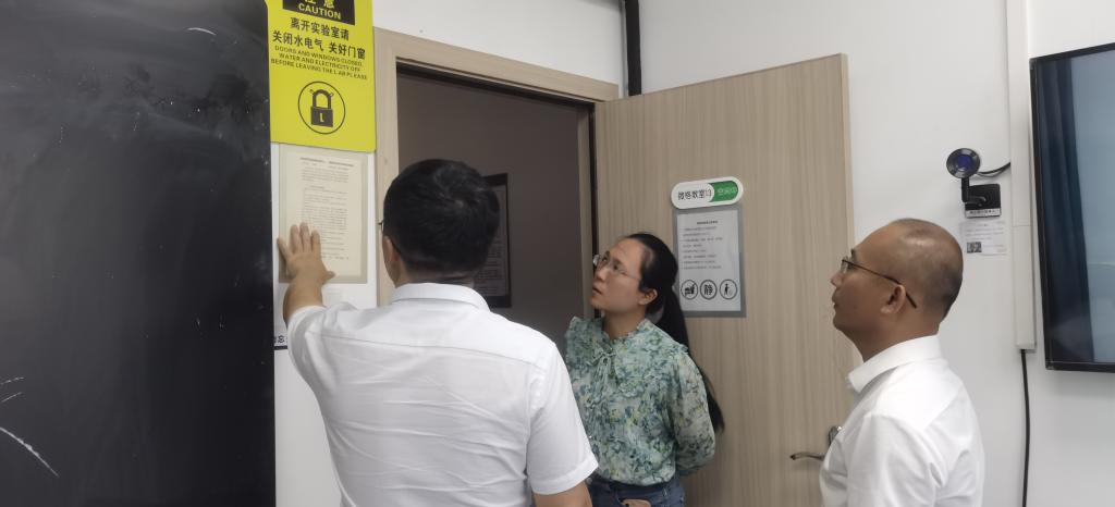 98日,学校教务处吴天生副处长、royal皇家88平台冯帮副院长谢德新副院长带领教科院实验中心实验员检查白云校区第二实训楼各实验室的使用及安全情况,旨在加强实验室安全管理、提升安全意识、防范安全事故发生,保障教学科研工作顺利开展。