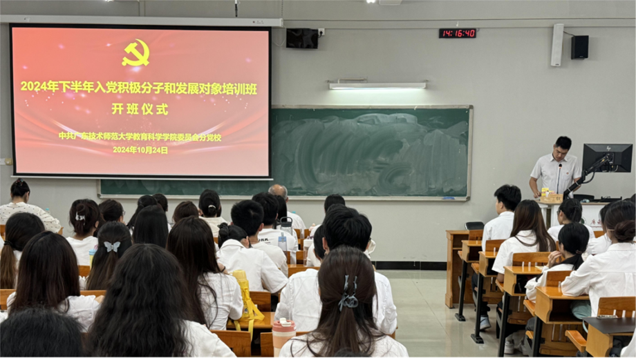 为深入学习习近平总书记重要讲话和重要指示精神,牢牢把握新时代党校工作的根本遵循,强化党员教育培训工作规范提升,助推新时代党校事业高质量发展。2024年10月24日,royal皇家88平台分党校于白云校区第三教学楼403教室举行了入党积极分子和发展对象培训班开班仪式。学院党委书记张旭日、研究生第一党支部书记梁爽、研究生第二党支部书记张晓颖、教育技术学本科生党支部书记热依拉·艾比布力、学前教育本科生党支部书记吴晨阳、应用心理学本科生党支部书记肖孟琦、专职辅导员袁炜出席会议。会议由吴晨阳主持。
