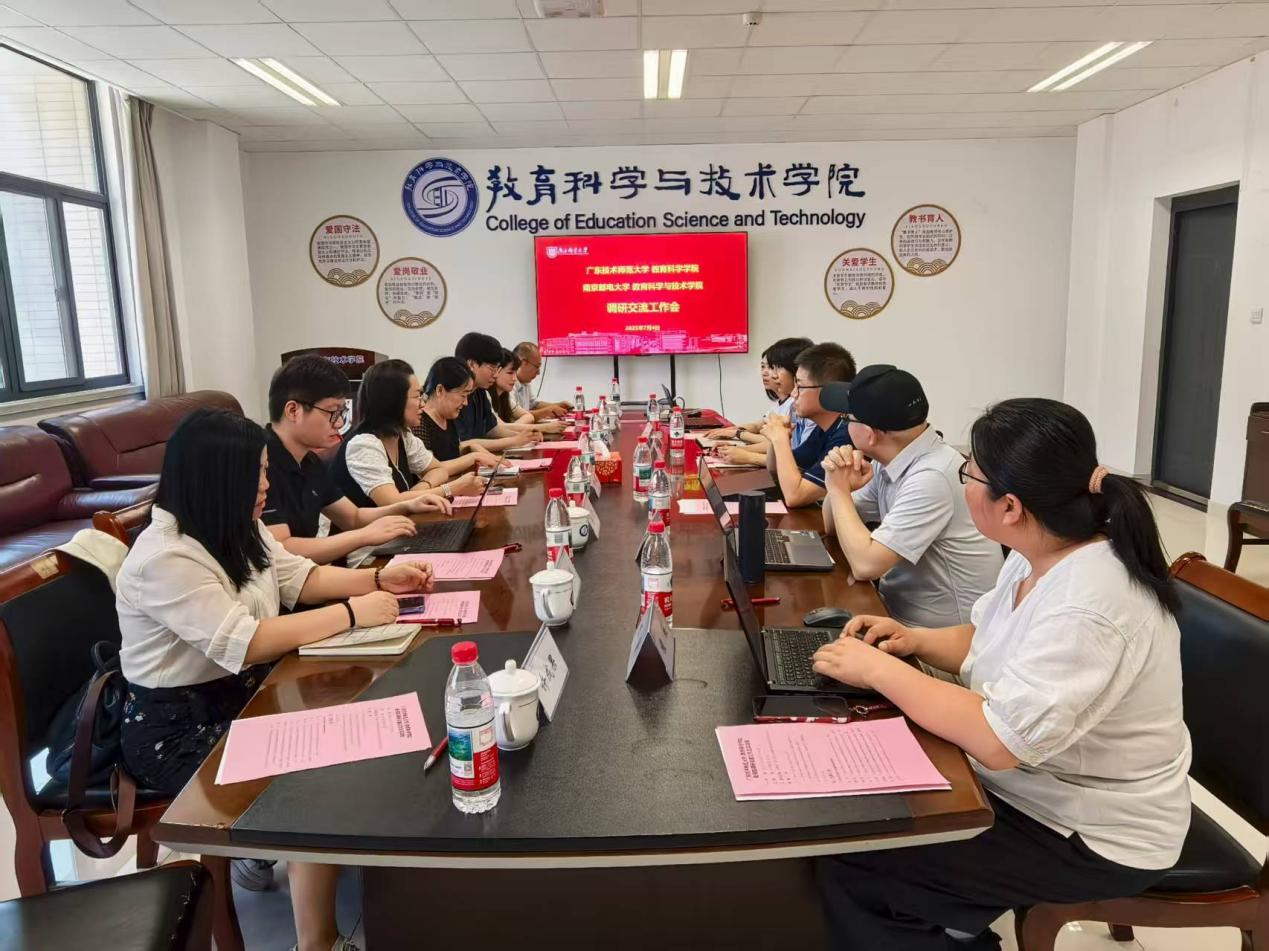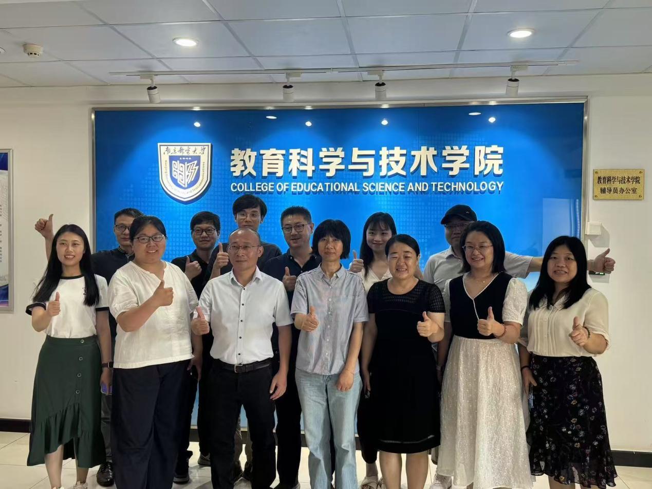 交流活动第二站,我院教师代表团于7月4日上午抵达南京邮电大学教育科学与技术学院。南京邮电大学单美贤、刘永贵、陈耀华、程薇、陆凯莉老师精心组织并给予热忱接待。双方就教育技术学专业的课程体系建设、人才培养方案及实验室建设等议题展开深入探讨,并就人工智能教育新专业申报相关问题交换了意见。在座谈会上,两校教师分享了各自在课程教学实践、人才培养方案与目标、人工智能教育发展趋势等方面的经验和观点。会后,教师们认为学科建设和本科教学两条腿走路,专业发展需要结合学校实际情况走出一条路。